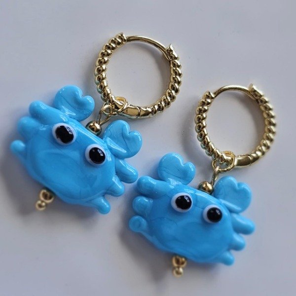 El dije es un cangrejo de vidrio murano de color celeste con un tamao aproximado de 6,2mm x 24mm.
